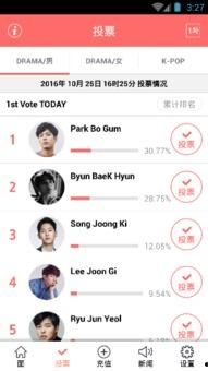 在APP中,你可以看到所有参与投票的明星,他们的照片、简介、作品等信息都一目了然。你只需要选择你喜欢的明星,点击投票按钮,就可以为偶像助力。而且,投票过程中还有机会获得积分,积分可以用来兑换明星周边产品哦!